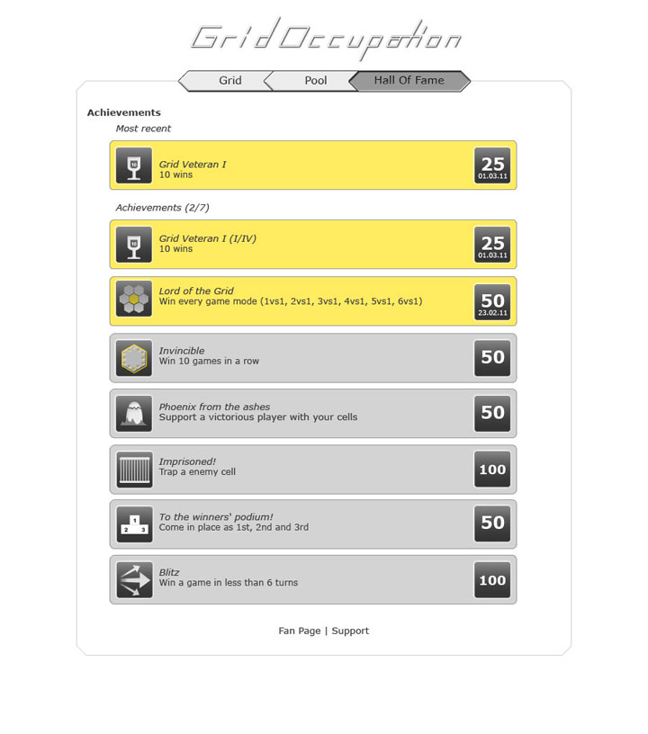 The goal of developing several Achievements was to grand future long-term motivation.